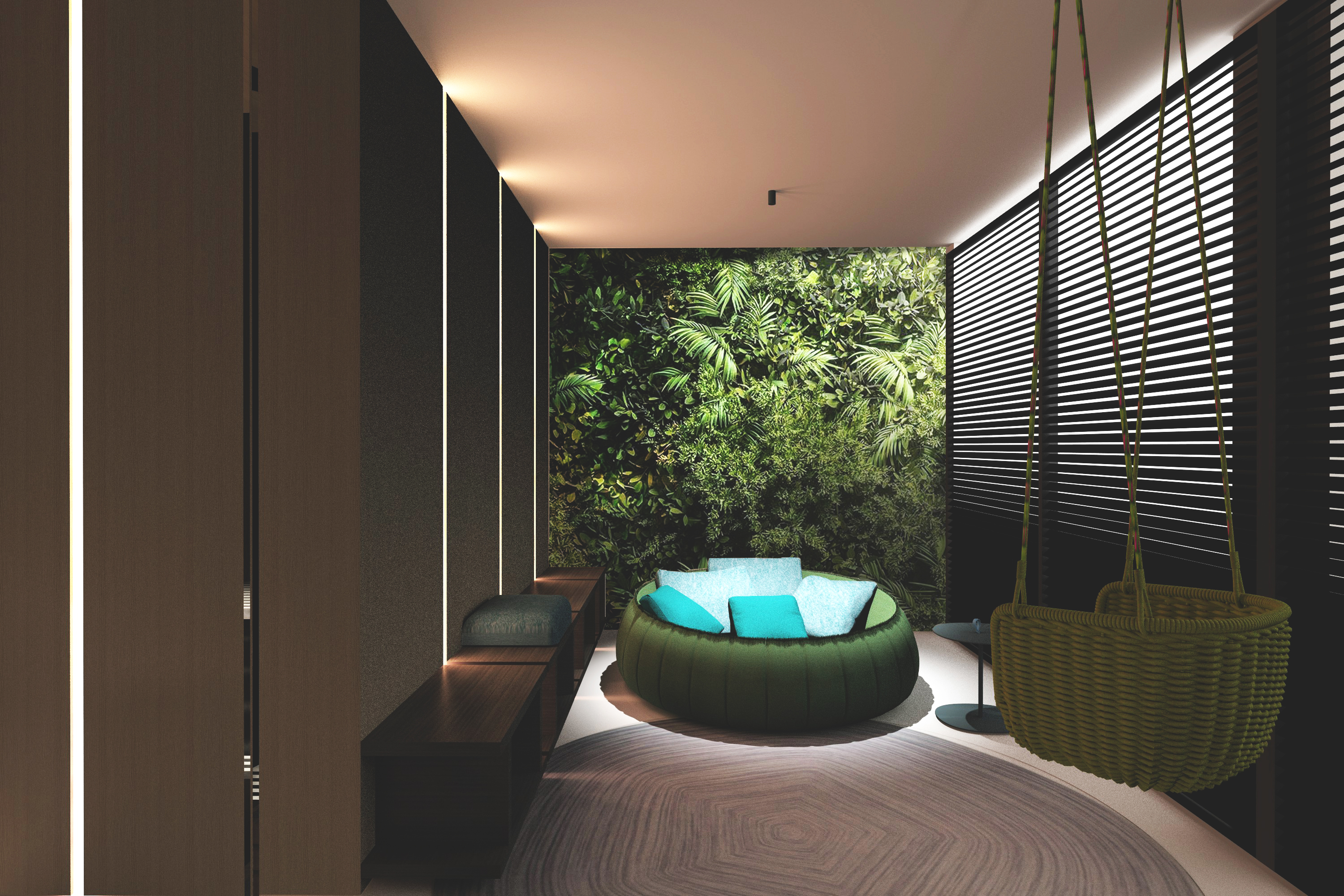 L’intero progetto rappresenta un connubio tra innovazione e semplicità esaltata dalla scelta di materiali, colori e arredi pensati appositamente per questo spazio, creando un concept site-specific.