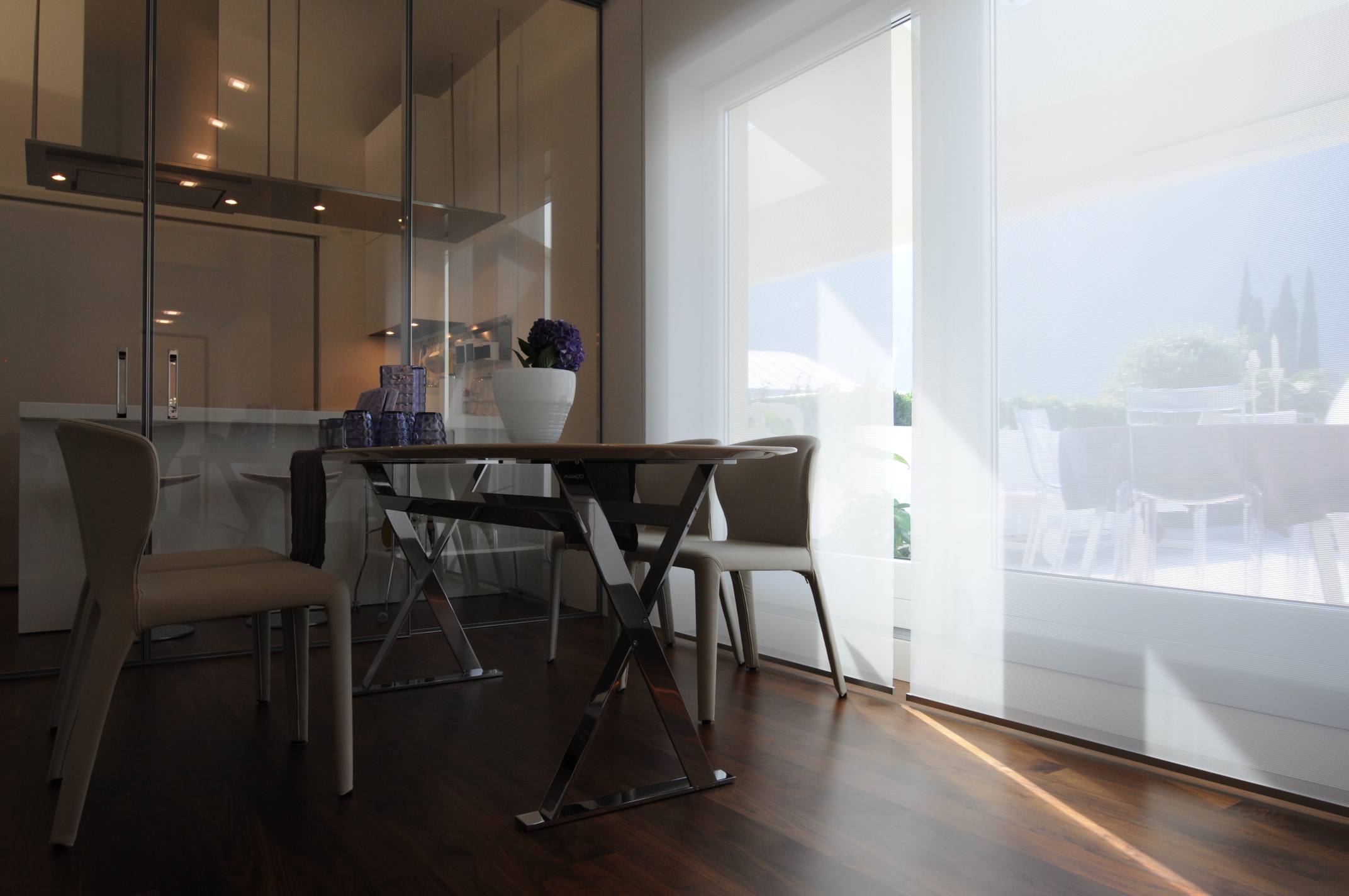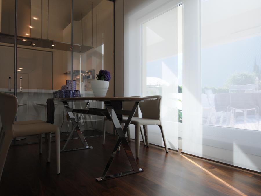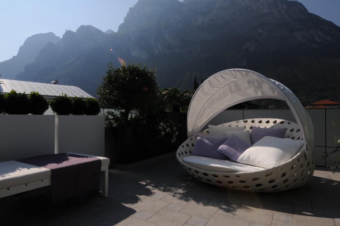 Questo attico in una zona centrale di Riva del Garda con vista sul lago ha richiesto un lungo studio degli spazi interni per accogliere tutte le esigenze della proprietà, affascinata dal grande terrazzo che permette di vivere all’aria aperta per nove mesi all’anno. Ma quando c’è bisogno di stare dentro, occorre riportare lo stesso piacere e anzi una maggior percezione di pro- tezione e di coccole e ovviamente tutte quelle cose pratiche e funzionali di cui ormai non possiamo fare a meno.
